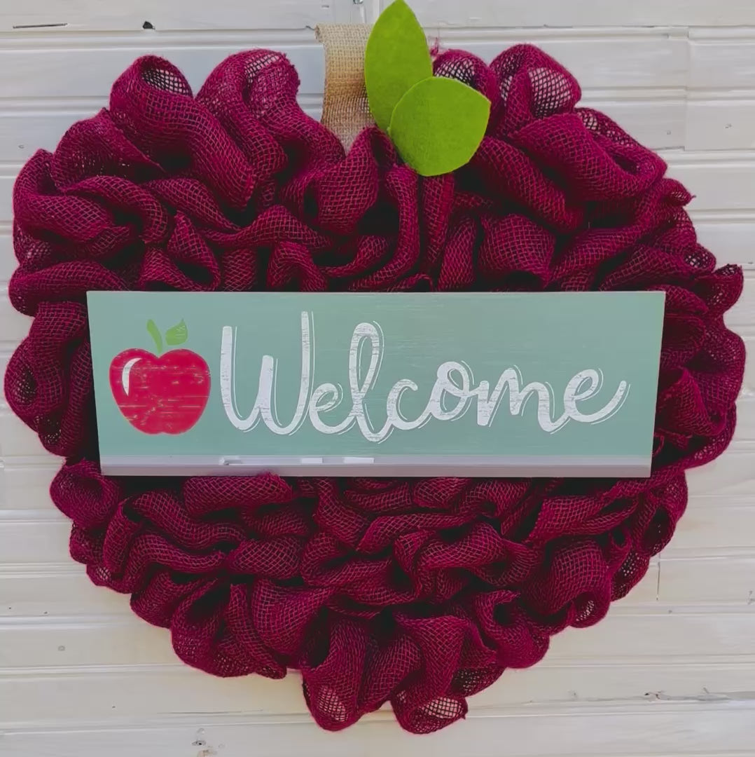 Add a sweet touch of rustic charm to your home or classroom with this handcrafted apple-shaped wreath made entirely from richly colored red burlap. Perfect for fall, teacher appreciation gifts, or farmhouse-style kitchens, this cozy wreath brings warmth and personality to any space.